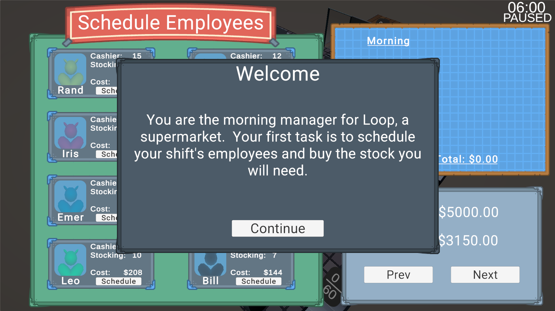 You have been hired to work as a morning shift manager at Loop Market. The same customers come each time you restart so you will have to watch what they want to buy to make the most money.
